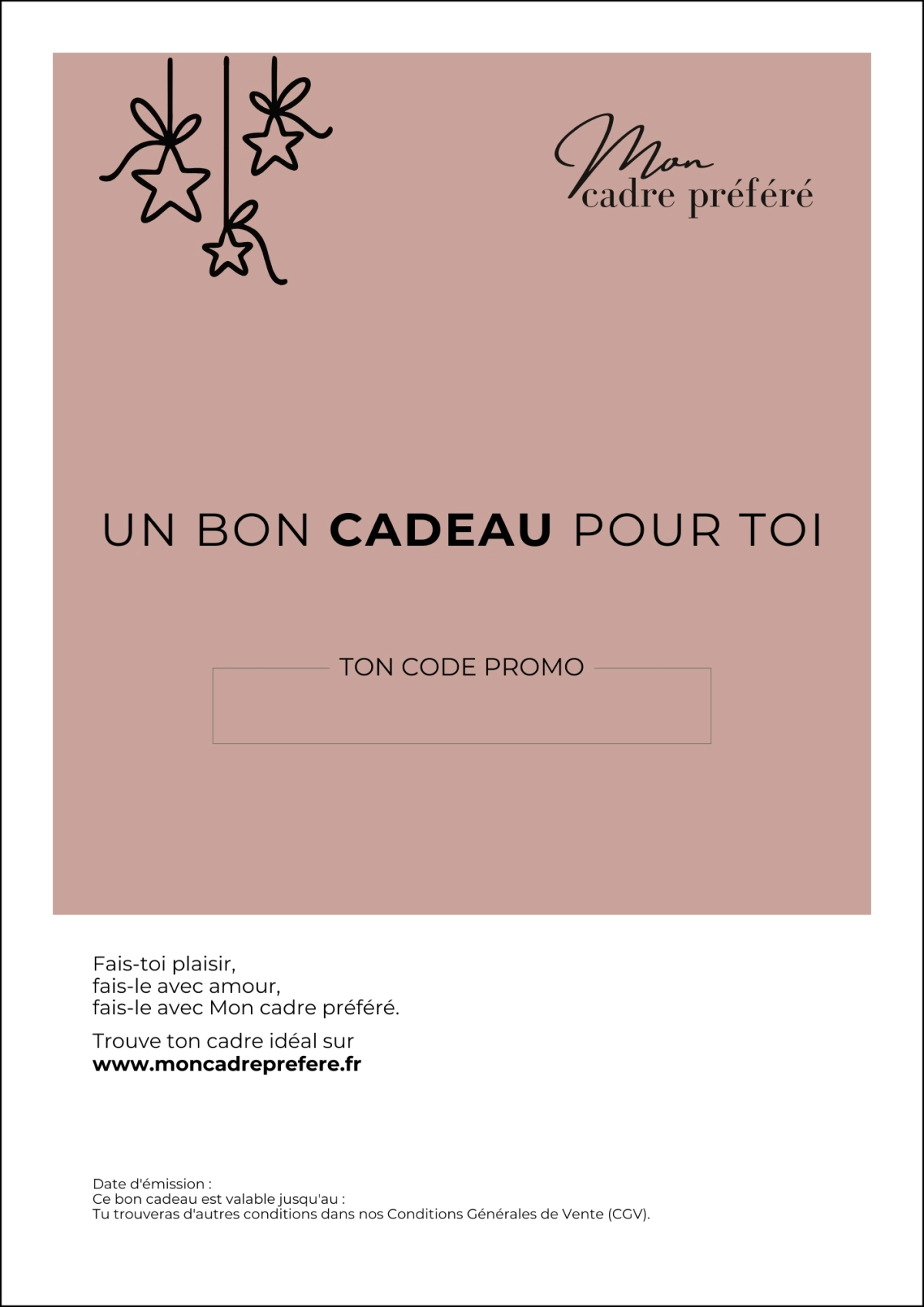 - 3b. Carte à imprimer: Une fois le règlement effectué avec succès, tu recevras la carte au format PDF par e-mail en quelques minutes. Tu peux ainsi l'imprimer toi-même et la remettre en main propre.
