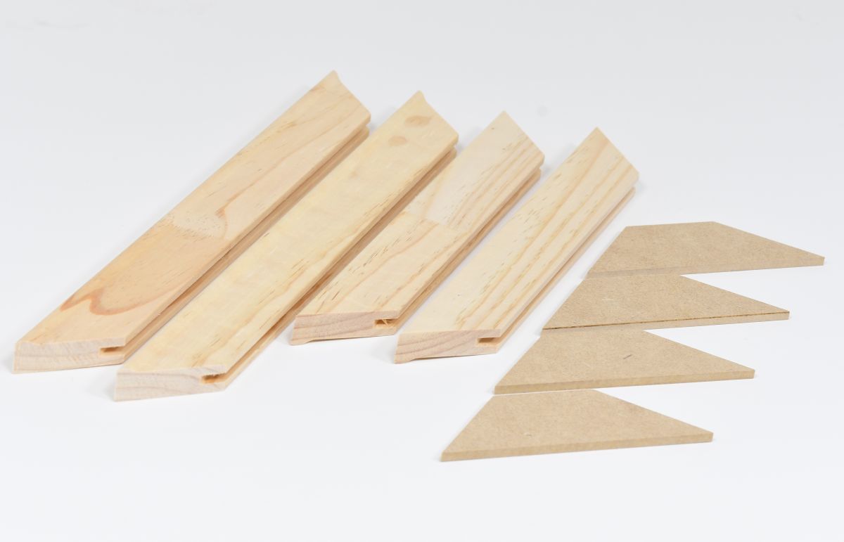 - Contenu de la livraison (pour les tailles inférieures à 60x80 cm) : baguettes de châssis + 4 clés