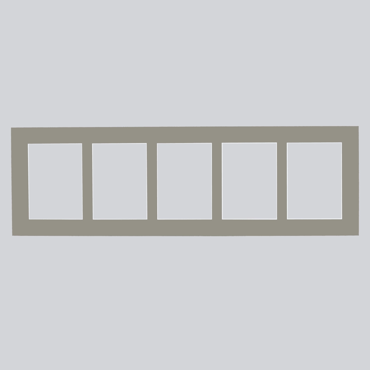 Le passe-partout multivues Fleur a des dimensions extérieures de 25x80 cm et cinq découpes adaptées à des photos de 13x18 cm. Ce passe-partout peut être utilisé aussi bien en format paysage qu'en format portrait.